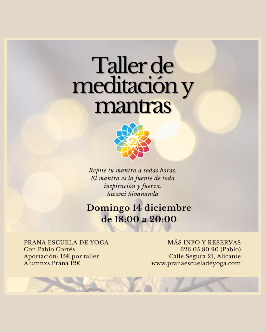 Seguimos con el taller mensual de meditación y mantras, un domingo al mes, creando comunidad y conectando con una frecuencia vibratoria más elevada. Sin imposiciones, sin dogmas, abiertos a lo que la experiencia nos depare, desde el amor. En el cartel están las fechas para este próximo trimestre. Anímate y ven a cantar en grupo y a conectar con tu ser, trascendiendo la mente analítica y racional. ¡Feliz práctica!