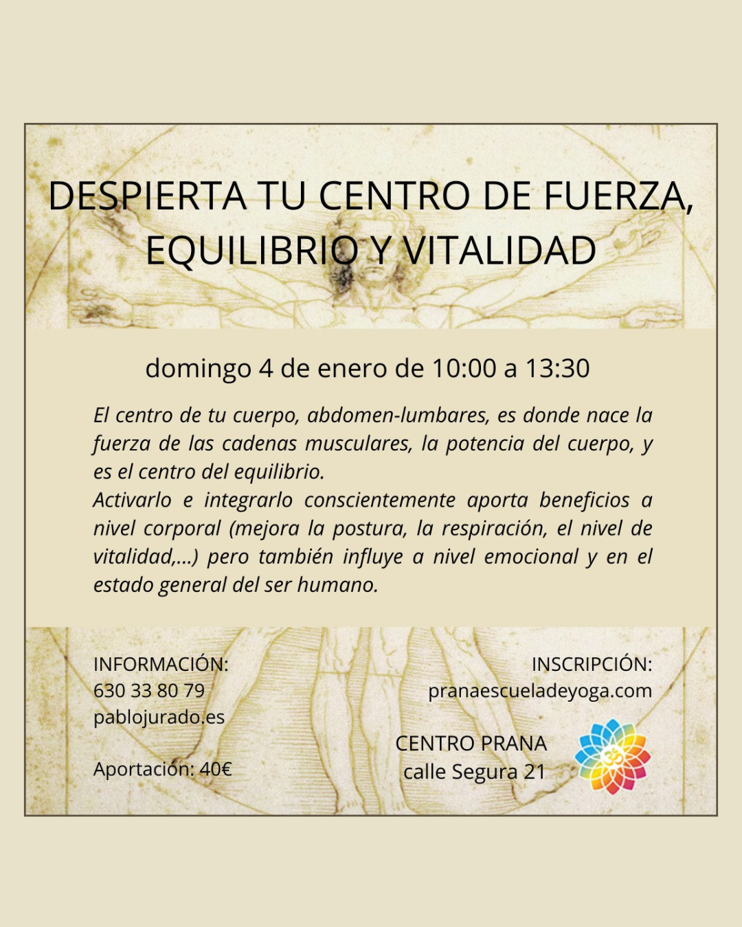 Sábado 3 de Enero, de 10 a 13,30 h. PRANA, ESCUELA DE YOGA